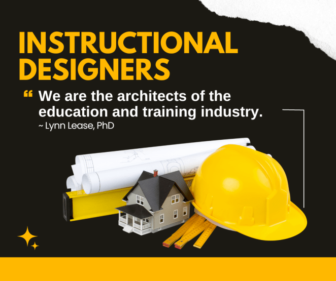 Instructional designers are the architects of the education and training industry. We are the creators behind the training and education that trainers and teachers deliver.